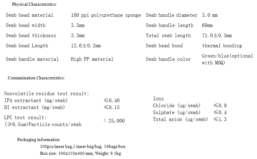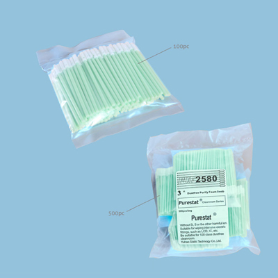 Purestat® swabs possess good quality and cleaning capability. It is used for cleaning HDD components, optics instrument, medical device or vacuum equipment ect. Swab head construction provides good particle and residue removal without any abrasion. Unique thermal bonding and cleaning process ensure a minimum of particle shedding from foam seal. The swab handle is made from a patented inherently polymer to provide clean, permanent protection without contributing particulate contamination to the clean-room.