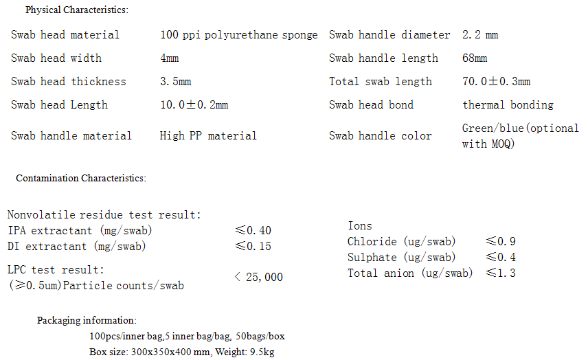 cleaning process ensure a minimum of particle shedding from foam seal. The swab