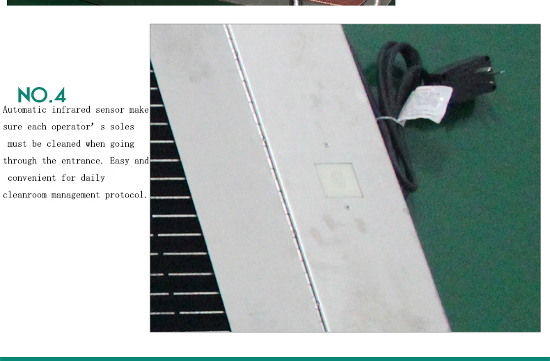 Function: to clean the partile and dust of the soles in the entry from low level to high level cleanroom.